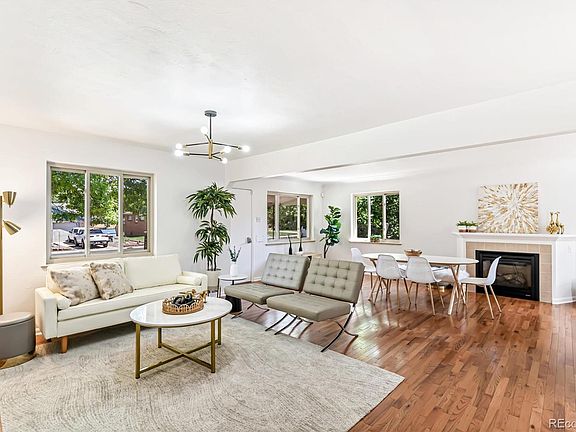 Contemporary Oasis in the Perfect Wheat Ridge location! This move-in-ready 4-bed, 2-bath brick Ranch seamlessly blends modern updates with classic charm. Recent updates include a new roof, fresh paint, and new carpet—this home is ready to deliver convenience, comfort, and style! An enormous Great Room welcomes you into the spacious main level with a gas fireplace and original hardwood floors that create a warm, inviting ambiance. The updated Kitchen features abundant cabinetry and countertop space, stainless-steel appliances, and an adjacent Dining/Reading Nook with a large sunny window. Two spacious bedrooms and a full bath rest on the main level. Downstairs to the incredible Lower Level, which boasts an exterior entry, offering the potential for short-term rental income or multi-generational living! The lower level is a haven of possibilities, starring a large Great Room with wood-grain laminate flooring and built-in cabinets for added storage, plus a near-new Kitchen with generous counter and cabinet space, a convenient breakfast bar, and stainless-steel appliances. Two non-conforming bedrooms on the lower level share a 3/4 bath and a dedicated laundry room with more storage space adds convenience. Outdoor living shines on the expansive 7,822 SF lot with a large partially covered deck that overlooks a tremendous brick patio and a perfectly sized lawn. Raised garden beds add a touch of greenery and charm under mature shade trees. The detached oversized 1-car garage provides ample storage space, plus a 1-car carport for bonus covered parking. Prime Wheat Ridge location, nestled between Founder’s Park and Panorama Park. Vibrant dining, drinks, and entertainment are just north at “Ridge at 38”! This exceptional home offers a unique blend of style, functionality, and convenience, and it’s ready to welcome you into a fantastic new chapter of comfortable living with bonus income potential in “Sweet” Ridge!