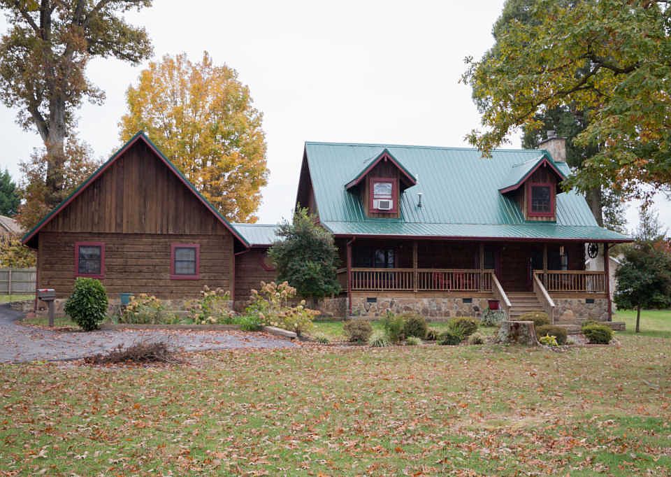 Log Cabin living in the heart of the city! No city taxes. Get ready to spend the holidays in this beautifully maintained log home that sits on a large corner lot. Close to schools. Enjoy the rain fall on the newer metal roof while sitting on the front covered porch or on the screened in back porch! This home boasts master on the main and many updates! Office space could be made into a small 3rd bedroom. New gutters, new central heat and air system and professionally landscaped. Completely fenced in back yard. Freshly stains in 2021, accented with custom made shutters. The yard is beautifully professionally landscaped. You have to see it to believe it!