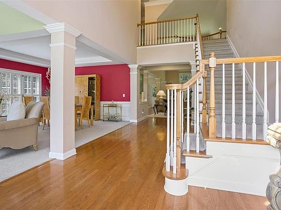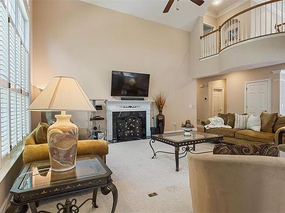 PRICE IMPROVEMENT! Step into this beautifully maintained 4-bedroom, 3-bath home offering the perfect blend of timeless design and modern comfort. Featuring an open, flowing layout and abundant natural light, this home is designed for both everyday living and entertaining. Hardwood floors, crown molding, and plantation shutters add elegance throughout the main level. You'll find a formal living and dining room at the front of the home, leading into a stunning two-story family room with a cozy fireplace and expansive windows that fill the space with natural light. The kitchen overlooks the family room and offers white cabinetry, a center island, plenty of storage, a pantry, and an eat-in breakfast area—ideal for hosting or casual meals. A main-level bedroom and full bath provide a perfect guest suite or home office setup. Upstairs, the oversized primary suite features a trey ceiling, two large walk-in closets, and a spacious ensuite bath with double vanities, a jetted tub, and a large, tiled shower. Two additional bedrooms share a Jack-and-Jill bathroom with double vanities, offering comfort and convenience for family or guests. The full, huge basement provides incredible storage space and future potential for customization. Step outside to a private deck and fenced backyard—perfect for relaxing, entertaining, or play. Located in a well-established swim/tennis community, this home offers fantastic neighborhood amenities and is just minutes from shopping, dining, schools, and more. A perfect blend of traditional charm and everyday convenience!