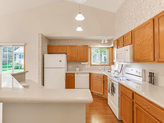 Comfort, sunshine, and space—this home has it all! Easy one-level living with 2 bedrooms and 2 baths, tucked on a quiet street in popular St. Michael. Fresh paint, brand new carpet, and large windows fill the space with natural light—many with quality blinds already in place. The primary suite features a private bath and walk-in closet. The sunroom is perfect for morning coffee or your favorite book, while the cozy gas fireplace sets the mood for chilly evenings. Want more room to relax? Step into the fully enclosed patio with screens and windows—great for soaking up every season. Updates include a new microwave, newer HVAC, and Kinetico water system. The extra-wide garage offers quality storage cabinets. Convenient location with parks, shopping, and dining just minutes away. Welcome home!