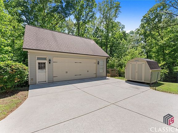This stunning luxury home on 1.5 acres near Lake Lanier, dining, and shopping offers the rare opportunity of two homes under one roof. With 5 bedrooms, 4 full baths, a study, and three finished levels, it's perfect for accommodating two families. The main level features hardwood floors, a dramatic 18-foot vaulted great room with a stacked stone fireplace, a gourmet kitchen with granite countertops and custom cabinetry, a formal dining room with coffered ceiling, and a spacious primary suite with a luxurious en suite bath. Upstairs, three additional bedrooms share a Jack-and-Jill bath and offer easy attic storage. The fully finished terrace level has no steps, wide doorways, gorgeous pine finishes, a home theater with surround sound, a redwood cedar sauna, a full in-law suite with bedroom, bath, kitchen, and living space. Outdoor living is just as impressive with a Trex deck, fenced backyard, raised gardens, fruit trees, and berry bushes. Parking includes an attached two car garage and a separate finished garage (26' x 30' two and half-car) with upstairs storage, plus an extended driveway for easy access.