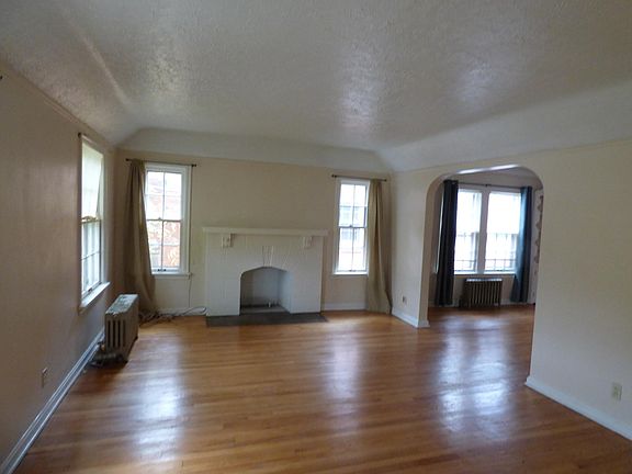 This is a very spacious home! It is a second and third floor of a duplex. It has a massive living room with Fireplace overlooked by a dining room large enough for seating for 8+. A great kitchen with breakfast area, refrigerator,dishwasher and stove. Two bedrooms and one full bath on the main floor. Three additional bedrooms and a bath on the third floor. There are washers and dryers supplied for each suite located in the basement. Two of the three garage spaces are assigned to this unit. Owner pays water sewer. Tenant pays gas and electric