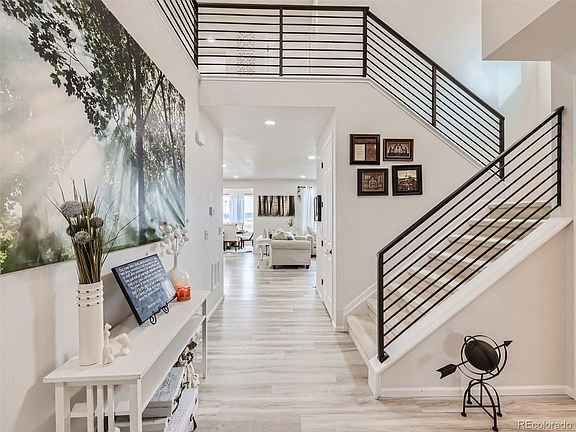 Beautiful home in the new Crystal Valley community in Castle Rock. This immaculate home is move-in ready with a low maintenance yard and spacious living areas. The main level features an open living area, as well as a study that could be used as a bedroom. The inviting family room is filled with light and includes an attractive modern fireplace and built in shelving. The large eating nook attached to the kitchen is full of light from the windows on three sides and is unique as it was a builder add on for this model. The kitchen itself centers on a large island with seating on two sides, beautiful granite countertops, a stainless steel appliance suite including double ovens, a gas range and range hood, and smart fridge. Upstairs you will find 3 generously sized bedrooms and a large loft that could easily be adapted to a 4th upper level bedroom.. The master suite includes an inviting 5 piece bath. Two additional full baths, upstairs laundry area complete the upper floor. An unfinished garden level basement awaits your personal touch. Being across the street from the Rhyolite Regional Park with its including tennis courts, extensive trails, and sports fields makes it feel like an extension of the professionally finished backyard. This home has it all, see it today!