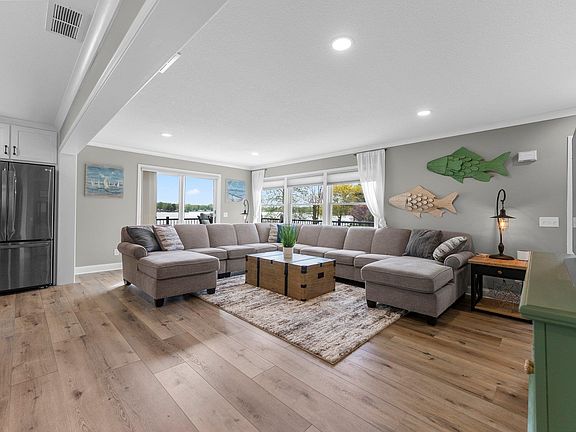 Open the door to this turn key, LAKESIDE PARADISE offering over 4000 square feet of finished living space! This plush level lot with over a half acre is a rare find that is more than premium when it comes to location and desirability for Big Turkey Lake, especially since it also includes its own back lot. That's right, almost a full acre included in this ALL-sports lake oasis! Let’s talk about how this property has had a head-to-toe facelift inside and out with some MAJOR upgrades, including all new stone and steel siding, new steel roof, upper balcony addition on waterfront, opening up the main level kitchen and living area, full kitchen remodel with island added, handcrafted cabinets, stone countertops, and new appliances. Seller spared no expense making this house a luxury lakeside retreat for all. Custom landscaping installed included a rock retaining wall along the beach and a flagstone patio and fire pit that really add to the lakeside vibe! Bedrooms and baths on every level with main level of this home offering 2 beds, 1.5 baths, upper level offers two bedrooms 2 full baths, a large landing area, and lower level, yet another bedroom and full bath! The basement of this home is a dream for hosting and entertaining with a bar, additional living and dining area, and a card/game room. Alright, back to location!? Who doesn’t LOVE having 4 restaurants, a Dollar General, AND a gas station all pretty much within walking distance or a golf cart cruise from their house? Exactly! Alright, back to the house! So what exactly stays? EVERYTHING! Come see for yourself!