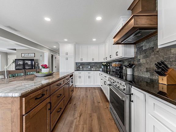 - Bar, Walk-In Closet(s), Stone Counters, Eat-in Kitchen, Kitchen Island, Open Floorplan, Custom Cabinetry