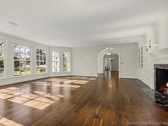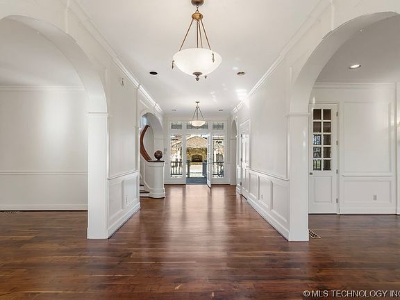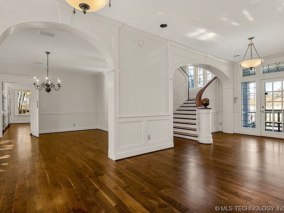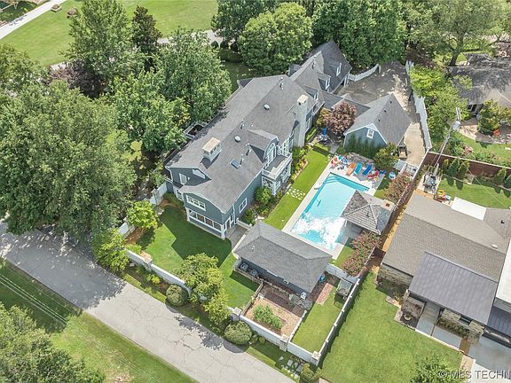 This is a wonderful, family home! Custom built in 1991, this one-owner, charming, meticulously maintained Georgian Cape Cod home is one of a kind in Tulsa. Located on a half-acre, professionally landscaped, peninsula-shaped lot, this home has four large bedrooms for children or guests with walk-in closets in addition to the spacious, inviting master bedroom suite. Wood burning fireplaces in the living room, den, study, and master bedroom suite add a cozy warmth for cold winter nights. The Southern-facing front porch is perfect for sipping coffee in the morning, while reading the paper or hosting family and friends for cocktails at five o’clock. The 6,271 sq. ft. of this home is loaded with custom woodwork and many family-friendly extras: crown molding, walnut plank floors, wet bar, extraordinary master bath which includes a jacuzzi soaking tub along with a recently refurbished marble tiled double shower, floored attic storage, updated modern kitchen that includes a Wolf range top, KitchenAid double ovens, new quartz countertop with subway tile backsplash, large pantry and wine rack, spacious 4-car garage, workout room, hobby room, recently refurbished gunite swimming pool, lovely custom water feature, covered gazebo and a detached workshop fit for the serious carpenter or the most industrious hobbyist. Other features include zoned heat and air conditioning (4 units), central vacuum system, household intercom, generator-ready hookup, and a half basketball court. There isn’t another property like this anywhere in Tulsa.