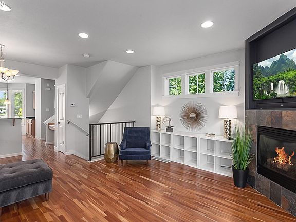 Rare end unit townhouse in the perfect location w/ 2 bedrooms up plus a bonus room on lower level with exterior access. Close to everything (freeways, NIKE, shopping, etc) yet still relaxing in your private sanctuary that backs to 222-Acre Tualatin Hills Nature Park full of trails, forest, wetlands, and more! 2 bed + bathrooms upstairs, hardwoods on the main, stainless steel kitchen appliances. Updated townhouse including new siding, new decks & railings, new exterior paint. See 3D Tour Link.