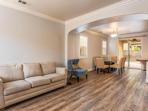This beautiful Harlan Ranch Wathen Castanos Boutique single story home with an open airy feel is perfect for luxury living. Community parks, walking trails and a resort like pool will make you feel like you're on vacation all year long. This wonderful home has new paint, the latest flooring, all new baseboards and crown molding throughout the house. The floorplan has the master bedroom and bath secluded, with a grand living and dining area with granite counters and a large eating area. There is a separate office space with a desk built in and the room could be turned into a third bedroom. The owner's suite is large with a big walk-in closet. The landscaping front and back include artificial grass and drip irrigation for low maintenance upkeep. This home is spotlessly clean inside and out. The neighborhood is quiet, safe, and secure. Washer, dryer, refrigerator included. Owner pays for HOA. Owner pays Homeowners Insurance Renters insurance required. Tenant is responsible for utilities. Home has solar. No smoking inside. Pet Deposit $250. Lease Term 1 year.