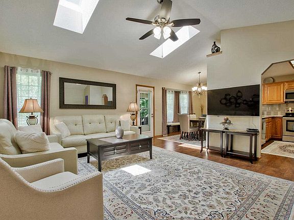 Simply beautiful. The instant you step into this tranquil home you will appreciate the natural lighting from the skylights & hardwood floors. Kitchen boasts granite countertops & a full set of stainless steel appliances. Off the dining step outside and enjoy the large trees, privacy, & peacefulness from the covered wood deck or patio. Other highlights include a spacious master bedroom with vaulted ceilings, private ensuite bath & walk-in closet. Huge 2nd bedroom with nearby hall bath would accommodate anyone looking for a 2nd master on the main floor. Basement offers great entertainment space, 3rd bedroom, and full bathroom with laundry. Low maintenance yard was designed for those that travel or want little outside work. This home has many updates and has been very well taken care of. There have only been two owners and it's been kid-free, smoke-free, pet-free, and it shows marvelously!