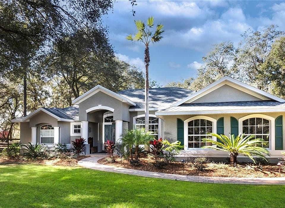 This elegant home sits on 2.5 +/- acres and is located on a highly sought after private gated road at the end of a cul-de-sac with no rear neighbors. Winding down the entry you will enjoy the mature trees and quiet country feel, as you round the bend the gorgeous and well landscaped home peaks out from behind the long, charming driveway. This 3-bedroom/ 2 bath home is 2,047 SF and in pristine condition. It features a newly installed 30-year architectural shingle roof (Jan '21), has been freshly painted, boasts a newer AC system and hot water heater and has had new garage doors installed. Additionally, this home has everything you need to enjoy the Florida weather and outdoors including a screened pool and hot tub, outdoor shower, a 2-stall metal barn, and shed for optimal storage. Inside, the home has it all including a split floor plan, living room and family room, formal dining room, completely enclosed entertaining area with newly installed Anderson sliders, updated kitchen with granite countertops, updated custom plantation shutters, and a spacious master suite. Make sure to bring your RV, boat and horse trailer, there is lots of open area for parking, and the barn (12' x 24') is equipped with both water and electricity. Don't miss out on this unique opportunity to own a little piece of country while still being minutes from major grocery stores and shopping, New Smyrna Beach, and De Leon Springs State Park! Make your appointment today!
