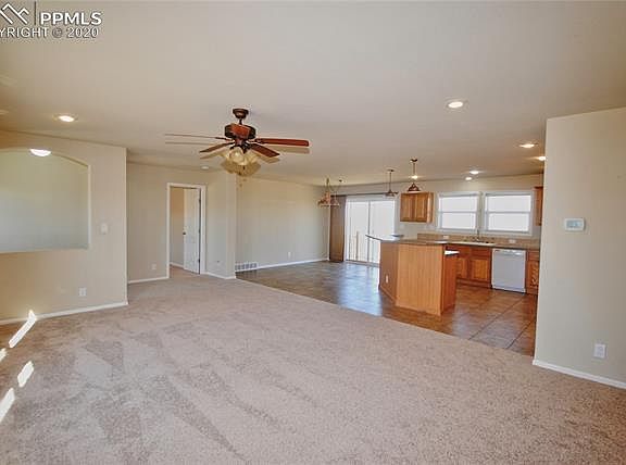 TONS of Square Feet and great Pikes Peak and Mountain views. New carpet and Newly updated deck. Super open concept with big eating and living areas. Kitchen features all the appliances including gas stove, refrigerator and dishwasher. Roof is only 2 years old and so is exterior paint. Domestic well all on 39.4 acres. Kellin internet and Sky beam provide great service. Custom blinds, walk in closets, Central A/C and heat pump. Neighboring lots are also for sale!!
