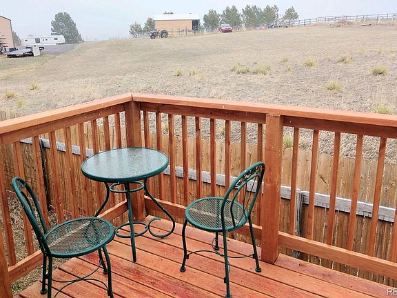 Located in the tranquil community in Western Country Ranches in Elizabeth, this home features an amazing 2 acre lot zoned for horses or your fury friends. The lowest priced home in the neighborhood. It is a charming efficient 4 bedrooms, 2 full bathrooms bi-level home situated on 2 acres of pure privacy. The kitchen offers a bright and open floor plan overlooking the dining and living room with a new deck for outside cooking pleasure. The utilities are easy on the wallet. It has the latest high speed internet capabilities for downloading data for game playing and working from home. It is just a ½ mile off paved County Road 13, and just five minutes from school, local shopping, and minutes to Parker. The Home has been updated to include new paint, lights, and new flooring throughout. The kitchen has been updated with a new range with hood, and dishwasher. The completed downstairs family room is ideal for entertaining with a full bathroom and 2 bedrooms. The property is exposed to sunlight from morning to night. Ideal for growing vegetables and herbs. Excellent for installing a greenhouse. There is a fenced area for your fury friends.