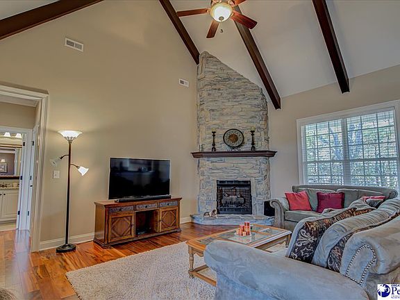 Welcome home to the desirable neighborhood of Highgate! Upon walking in the front door of this beautiful home, you are greeted with a open floor plan, floor to ceiling stone fireplace, exposed beams and soaring cathedral ceilings. This 3 bedroom (plus a bonus) and 2 bathroom home has been maintained in pristine condition and is sure to impress you with its desirable features. Highlights include: gorgeous hardwood floors, a large open kitchen with granite, tile backsplash, counter seating, stainless steel appliances, and pendant lighting, a dining room with enhanced molding and trey ceiling, and a large laundry room. The spacious first floor owners suite has a trey ceiling and large walk in closet. The bathroom includes granite, built in shelving, garden tub, and a tiled shower. The covered back porch over looks a private wooded area and includes a gas hook up for a grill. Nestled on a quiet cul-de-sac in a great neighborhood, this is truly a must see home.