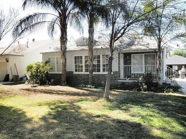 Truly charming mid-century 3 bed, 2 bath home on a quiet tree lined street just min. from parks & shopping. The professionally landscaped front yard features a large tree as it's focal point offering shade & beautifully accented w/a raised planter bed in addition to the tall palm trees & fresh mulch. From the quaint front porch step into the spacious family room. The large space features original wood floors, lots of natural light from large windows, new lighted ceiling fan for the warm days & a brick faced fireplace for the cool nights. The formal dining room is just off the kitchen & living rooms & also features lots of natural light, new ceiling fan & wood floors. The kitchen has been updated w/granite counter tops & backsplash & tile floors as well as an eating area nook. The laundry room is conveniently located inside, just off the kitchen. The hallway leads to the master bedroom that features dual closets & lighted ceiling fan while the master bathroom features dual sinks, privacy toilet & shower & has direct access to the backyard. The front bedroom is spacious, while the 3rd bedroom is large & features direct access to the hallway, kitchen & backyard. The hall bathroom has a new flooring, shower & tub combo. The backyard is large w/covered patio, brick patio under the shade of a mature tree, as well as fully fenced & private spa w/custom decking. The long driveway leads to a 2 car garage set back from the street. Other notables: new carpet, new faucets, fresh paint.