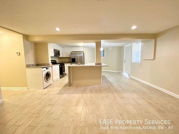 Welcome to 3646 New Hampshire Avenue! This two bedroom, two bathroom English basement apartment was completely renovated a few years ago and is just awaiting your personal touches. The open floor plan, beautiful kitchen, two ensuite bathrooms and private back patio make this a must see. Apartment Features: Completely renovated throughout - part of a four unit building Beautiful light hardwood floors throughout Spacious and open living/dining room area Gourmet kitchen with marble countertops, stainless steel appliances and amazing "L" shaped island with bar seating Good sized first bedroom with ensuite bathroom Smaller second bedroom with additional ensuite bathroom Combo Washer/Dryer Parking: Street parking Utilities: Tenants are responsible for electric. Water and gas are included in rent. Lease Terms: Available immediately. Minimum one year lease. Pets considered on a case-by-case basis with a $50/month pet fee (per pet) and also pending approval by Owner. Application fee is $35 and includes a credit check. Security deposit equal to one months rent due upon lease signing. Location: Sitting just steps away from the Georgia Ave/Petworth Metro Station, this location is a commuter's dream. Across the street from CVS and just two blocks from the new Safeway. Just a quick walk to all of the great restaurants/shops in Columbia Heights such as Target, Chipotle, Cava, Wonderland Ballroom, Meridian Pint and much more!
