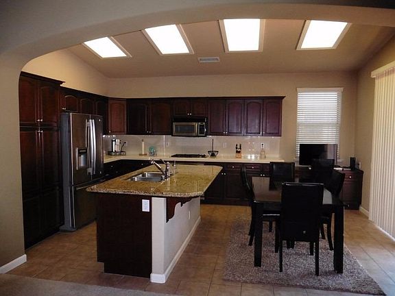 This one story, 2 car garage home in Harlan Ranch boasts a large open floor plan with the MB separate from the other two bedrooms. The huge kitchen features an abundance of cabinets and lots of granite counter tops, including a breakfast bar at the island. There's even a built in desk in the eating area and a slider out to the huge stamped concrete patio in back. Also in back is a synthetic lawn for decreased water usage, a drip system for other landscaping and a spa hookup w/it's own circuit. The large LR has recessed lighting and a FP. This home is situated in a great location within walking distance to Bud Rank Elem School and the park.