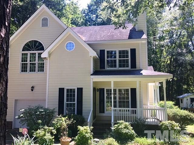 PRIVATE WOODED LOT, 1573 SQ FT COTTAGE STYLE HOME. 3 BR 2 1/2 BATHS. FRESHLY PAINTED EXTERIOR & REFRESHED INTERIOR. FLOOR PLAN DESIGN INCLUDES DINING ROOM & BREAKFAST AREA, WRAP AROUND KITCHEN + PASS THROUGH & MUD AREA, 2nd FLR MASTER SUITE, WIC , DOUBLE VANITY & 2 GUESTS BEDROOMS W/2ND FULL BATH. GREAT PRIVATE YARD. *NEW ROOF TO BE INSTALLED IN 60 DAYS* RDU, RTP, RALEIGH, DURHAM & WAKE FOREST, HARRIS TEETER, MANY RESTAURANTS & REX MEDICAL FACILITY IN WAKE FIELD ALL A SHORT DRIVE FROM THIS SPECIAL HOME.