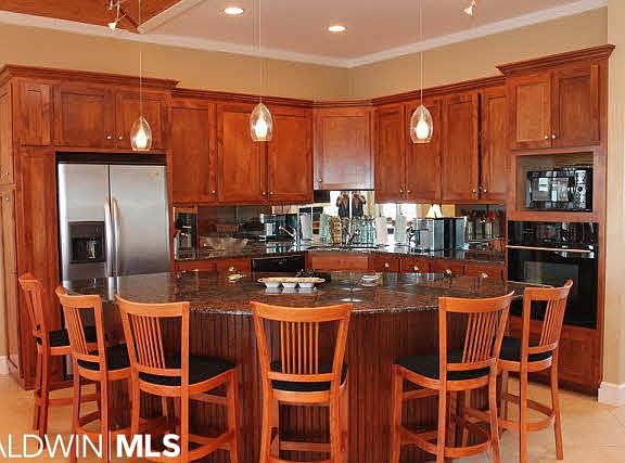 CUSTOM, LUXURIOUS WATERFRONT HOME-Incredible bay views from almost every room will make it hard to leave home! This home is filled with quality. Custom-built cabinets,Elevator,vaulted Beadboard ceilings,spacious Family Room with wet bar and fireplace. Master suite has large walk-in closet,built-in cabinets & shelves,fireplace,large tiled shower & Whirlpool Tub in bath. Top level could be a 4th bedroom. Outdoor living is incredible with huge backyard, Pier and Dock with Boat House and Boat Lift.
