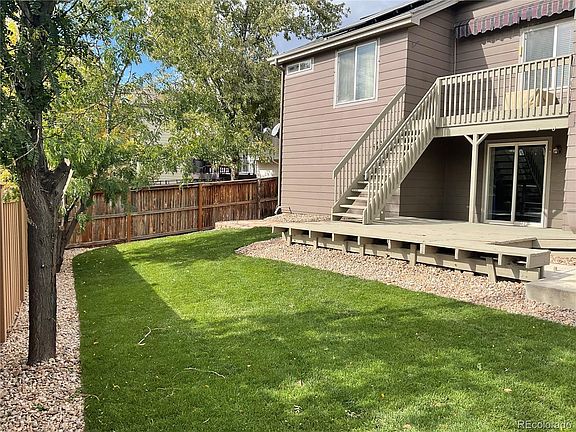 Rare ranch floor plan in Westridge Highlands Ranch! New backyard landscaping (sprinklers too.) Roof replaced 2016 (5 year roof cert provided) Newer carpet! All major systems were just replaced (new furnace, AC and hot water heater) The main floor features a primary bedroom with a full bathroom with a double sink vanity and a walk-in closet plus 2 additional bedrooms and a full bathroom. As you walk in the front door you are greeted with a open floor plan highlighted with recently refinished hardwood floors, a living room with vaulted ceilings and a gas fireplace that flows into the spacious eat-in kitchen (new dishwasher), ample counter space, cabinets and a open bar style counter top perfect for guest while you entertain. Main floor laundry! The walkout basement completes this home featuring a large bedroom, 3/4 bathroom, workout/flex room, bar area, game area and a theater area. (The perfect man cave) Solar panels (paid-off $17k monthly savings around $100 on electric bill). Great location - easy access to C-470, Santa Fe. schools, parks, trails, shopping and restaurants.