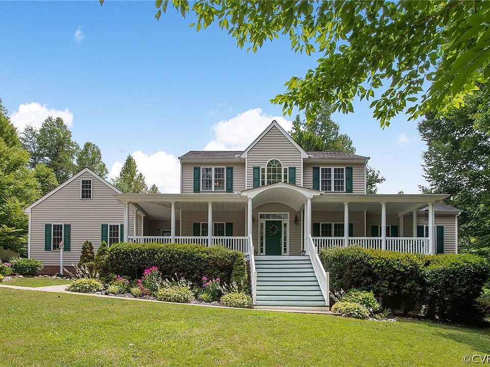 Welcome Home to this special house built in 2008 on a very private 10 acre lot in Goochland. Bring your horses! The long, winding gravel driveway leads you to several acres of cleared land surrounding the house that provides abundant nature and plenty of space for vehicle storage and playing, with trees available for shade. Full front country porch welcomes you in the morning with coffee and welcomes you in the evening with a cool drink. The house boasts 2,548 square feet of warm and comfortable living space. Enter through the front door to a 2-story foyer that provides bountiful natural light. To your left is the formal dining room with chair rail and crown molding, to your right is a sitting room or office. The living room has a gas fireplace and door to the back deck. The kitchen has wood floors that continue through the first floor, and island and abundant pantry space. Utility room with washer and dryer has access to the front porch and garage. Downstairs also features a primary bedroom with walk-in closet and bathroom with double vanity, luxurious soaking tub and separate shower. Upstairs, there is a landing that serves as an additional room, a bedroom with a private bathroom, and two additional bedrooms, each with a private sink and shared bathtub and toilet. Outside, there is a back deck, a storage shed and a front garden bed of local natives that attract butterflies. Water softening system on the well water and prewired for a portable generator. This home is not to be missed. Schedule your showing today!