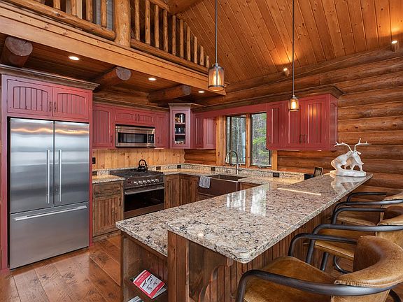 Your Paradise Awaits! Built in 2016 this custom log home is a fusion of rustic and contemporary. It’s three bedrooms and two full baths are artfully arranged to provide a comfortable kitchen and great room. The Chef's kitchen includes custom cabinets, gorgeous stone counters and high-end Fisher and Paykell appliances. The real wood floors are absolutely stunning. Oh, and the VIEWS! Sitting just 30 feet from the water’s edge the home faces southwest to bring warmth and dramatic sunset views. The sand beachfront has a gradual drop off to deep water, perfect for swimming and paddle boarding. The fieldstone fireplace brings a cozy warmth in winter after a day on the nearby snowmobile trails, and the outdoor fire pit and hot tub will warm you on chilly spring or summer nights. This home could be a fantastic rental but you may want to keep it all to yourself! The choice is yours!
