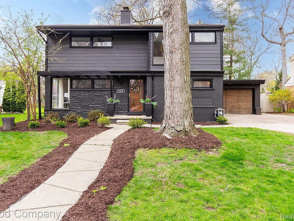 A beautiful unique gem in the heart of St. John Woods in Berkley. This 2,200 sq. ft. mid-century colonial is breath taking. Completely remodeled 3 bedroom, 4 bath (2 full, 2 half bath) with 2 car attached garage and finished basement. Open and airy floorplan, great room with masonry fireplace greets you when you enter this home. New kitchen with beautiful cabinets, quartz stainless steel appliances. All four bathrooms are updated with new vanities, fixtures, and tile. Hardwood floors throughout both on the main floor and upstairs. A gorgeous family room offers a vaulted ceiling, wall of windows, and door wall that leads to a spacious backyard. Fantastic office/mudroom off the kitchen that offers vaulted ceilings, built-ins, and quartz countertops designed for storage and space for your pets and your family. The finished basement with large windows and ceramic tile is a great space for extra entertainment. A beautiful mid-century wet bar with original mid-century lighting and a large masonry fireplace. Freshly painted throughout. New plumbing and electrical service. Carrier furnace and air conditioning too. All of this within walking distance of downtown Berkley school, and Corewell hospital.