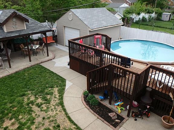 Extravagant outdoor amenities make it easy & fun to entertain. Covered pavilion w/fp, pool w/sprawling decking, laid back front porch, attached 4 car gar & detached 1 car gar for all your toys and hobbies. Enormous master BR w/sitting area & walk-in closet. All remodeled baths, updated kitchen, finished bsmt w/rec rm, new carpet & bar. Newer roof.