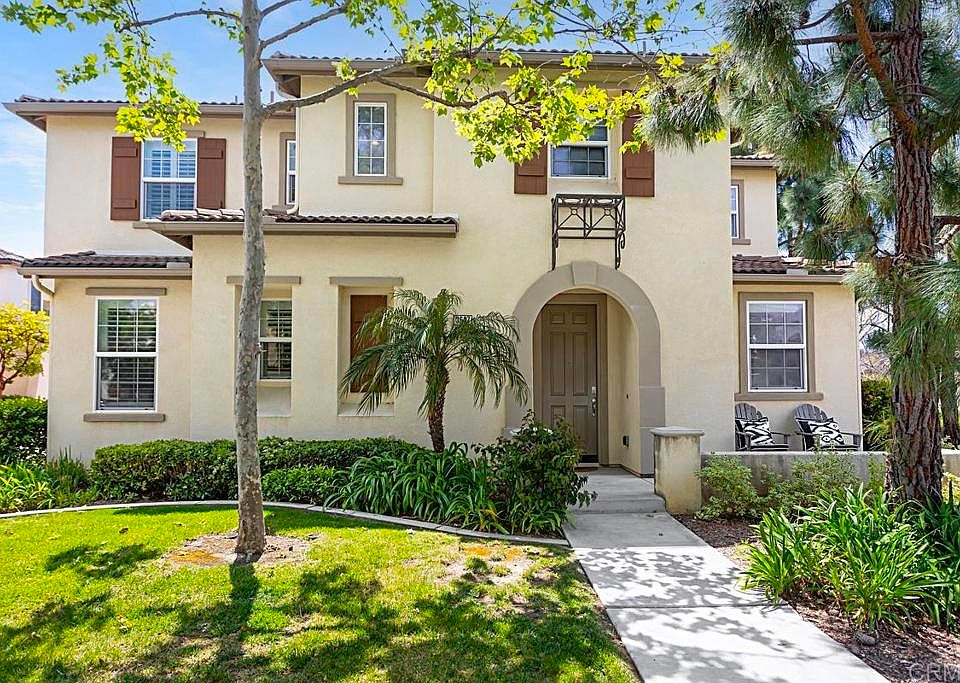 Welcome to your new home in the Foothills, a premier neighborhood in Carlsbad. This beautiful 4-bedroom plus Loft, 2.5-bathroom detached house is on a corner lot facing a beautiful tree lined street. The entrance is charming with a front porch perfect for enjoying the afternoon sun. Step inside to a generously sized living room with wall mounted TV, open to the back patio and kitchen area. Kitchen features granite counters and stainless steel appliances. There is an attached 2 car garage and downstairs bedroom and half bath. Private patio area is easy with low maintenance hardscape and turf. Lovely wood flooring on first and second levels. Ascend the stairs to the 2nd floor where you will discover 3 additional bedrooms, a spacious loft and full size laundry room complete with washer and dryer. Unwind in the master suite with its own en-suite bathroom, offering a tranquil escape. Home includes AC and tankless water heater. Enjoy exclusive access to the private Foothills Swim Club, pickle ball courts, playgrounds, BBQ area and basketball court. With it's prime location, this home offers easy access to beaches, shopping, dining, and top-rated schools.