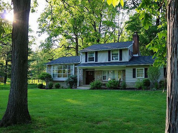 Mid Century Modern split level located in gorgeous treed lot in the Oakhurst area if Upper Saucon Twp. Stone and siding exterior accented with solid mahogany craftsman entry door. 2 car garage parking, deck, patio. Enter through a foyer to the main living floor with hardwood floors, new kitchen, large living room with an eat-in kitchen, dining room, and half bath. Below is the family room with a high efficient pellet stove insert fireplace and wall-to-wall carpeting. Lower level includes a finished recreation room and laundry with a walkout to the backyard. Unfinished additional space, ready for renovation. Third floor offers 3 bedrooms and 1 full bathroom. New central air, gas/oil heat and hot water. Public Open House Saturday (6/15) from 1-3pm.