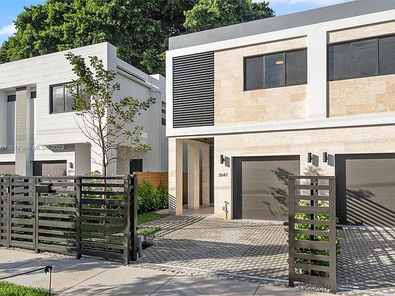 Welcome to luxury living redefined in this exquisite 4-bedroom, 4½-bathroom townhome, where every detail has been carefully curated to elevate your lifestyle. Spanning 2,993 total square feet Meticulously designed w/ modern aesthetics and cutting-edge technology, featuring 11ft ceilings, 8 ft. solid core doors, European porcelain tile floors, & smart home integration. The kitchen boasts paneled appliances, European cabinets, & quartz countertops. Enjoy ensuite bathrooms w/matte black fixtures, glass enclosures, and illuminated mirrors. Smart features: MyQ garage access, Nest thermostat, doorbell, and Lutron Caseta lighting. Spacious backyard w/covered deck & large pool. Hurricane impact windows throughout. This townhome is a harmonious blend of modern design and cutting-edge technology.