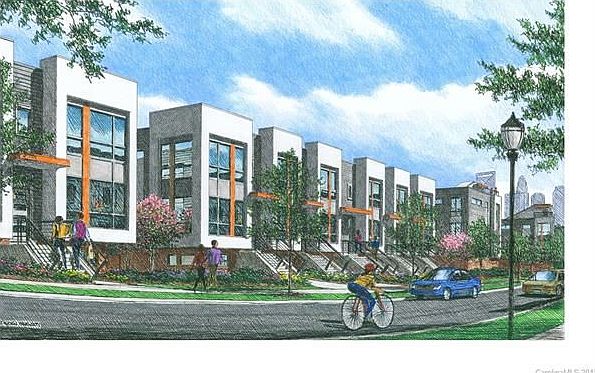 Contemporary New Construction townhomes in historic South End. Walk to the Light Rail, Shops, Restaurants, Triple C Brewery, and proposed Sedgefield development. Expansive balconies, oversized windows, attached garage. Finishes include hardwoods, quartz countertops, tile backsplash, stainless appliances, tile baths & showers plus modern chrome fixtures. Prices range from 280's to low 400's. 2 and 3 bedroom units. Roof Terraces available. Estimated completion Fall 2016.