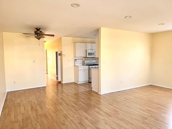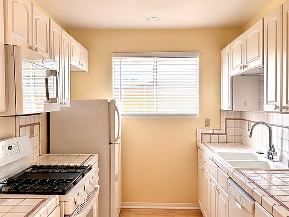 Discover the perfect blend of comfort and value in this beautifully updated 2-bedroom, 1-bath duplex, offering the feel of a single-family home without the price tag. Inside, you'll find stylish laminate wood flooring throughout, complemented by ceramic tile in the bathroom and shower surround. The spacious living room is bright and inviting, featuring recessed lighting and two large windows that fill the space with natural light. The well-appointed kitchen includes a gas range, dishwasher, and microwave, making meal prep a breeze. A separate laundry room with washer and dryer adds everyday convenience. Both bedrooms offer generous closet space, and the second bedroom provides direct access to a private backyard and patio through sliding glass doorsideal for relaxing or entertaining. Fresh, warm paint tones give the home a modern, welcoming feel. Additional features include a single-car garage (storage only) and a long driveway for plenty of off-street parking. Gardening service is included for easy, low-maintenance living. Good credit and income is a must, schedule a tour today!