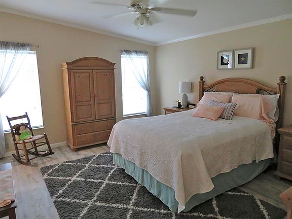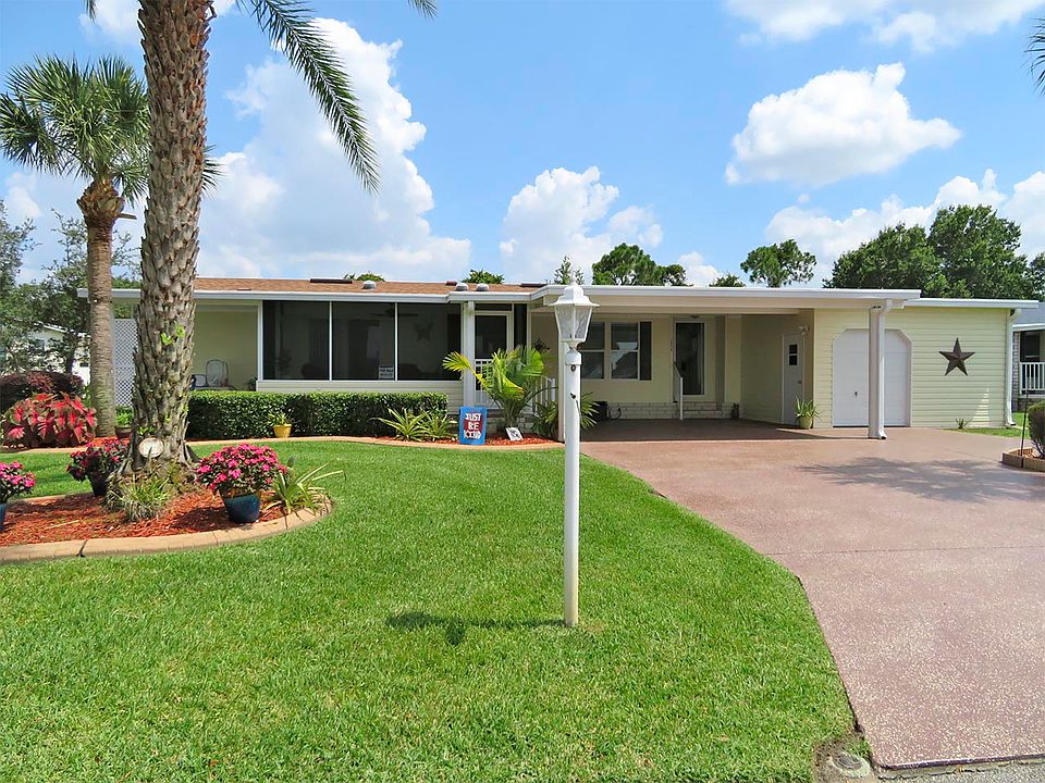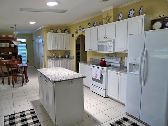 BY APPOINTMENT ONLY. This SPARKLING CLEAN, FURNISHED, THREE bedroom TWO bath home has a great split floor plan (bedrooms at opposite ends). Spacious island kitchen with granite countertops, large pantry and freshly painted cupboards highlight this lovely and bright kitchen. Large Master Suite has a separate shower and tub, great for soaking! INCLUDES THE GOLF CART. Oversized golf cart garage offers tons of storage. 2016 ROOF & HVAC.