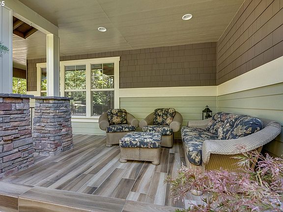 Discover an exceptional retreat where the rustic warmth of a mountain lodge meets the enduring craftsmanship of classic Northwest design. Nestled in the coveted Barrington Heights community of West Linn, this custom-built home offers a rare balance of refined luxury and natural beauty. Step through the entry to be welcomed by soaring vaulted ceilings framed with massive timber beams and detailed tongue-and-groove finishes that showcase true artisan workmanship. The open-concept great room blends seamlessly with a chef’s kitchen, complete with professional-grade stainless steel appliances, rich custom cabinetry, and a striking granite island designed for gathering and entertaining. Practical elegance defines every space, from the main-level office or den with built-in bookshelves to the expansive primary suite, featuring a spa-inspired bath and serene forest views. Downstairs, the lower-level transforms into an entertainer’s haven with a spacious recreation room, guest bedroom, and full bath, plus direct walk-out access to the beautifully landscaped yard. Thoughtfully designed with native plantings, meandering pathways, and tranquil outdoor seating areas, the grounds invite peaceful connection to the surrounding landscape. Living in Barrington Heights means more than just a beautiful home; it’s access to West Linn’s best: top-rated schools, scenic parks, and miles of walking trails, all within a community known for elegance and warmth.