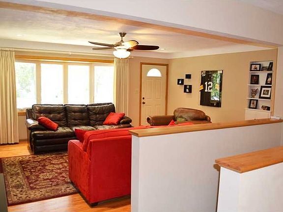 Updated, move-in-ready ranch on a quiet cul-de-sac! Gorgeous hardwood floors throughout the entire main level. Open floor plan with a spacious great room with new gas fireplace, plaster walls & cove ceilings. Updated kitchen with oak cabinets, granite countertops, tile backsplash, & dining area. Updated bathroom with heated tile floors, jetted tub/shower, laundry chute, & new vanity & linen closet. 3 bedrooms with hardwood floors & newer light fixtures complete the main. Lower level rec room that is ready to be finished, bedroom, bathroom with tile shower & storage/laundry area. Updates include: newer storm door, water heater, furnace, AC, roof, gutters, & breaker box. Washer and dryer included. Gorgeous yard on a wooded lot with deck! Hurry, this one won't last long!