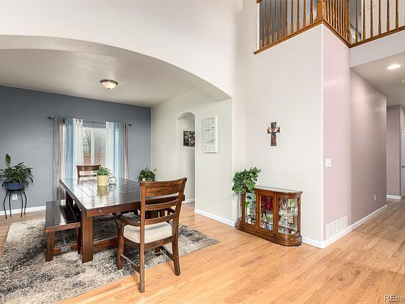 Welcome to this stunning two-story home that combines elegance and functionality, offering a 3-car garage w/ an extended driveway that accommodates additional parking for guests. You'll be greeted by a combined living/dining room w/ high ceilings, new carpet throughout, wood flooring, & ample natural light. The great room beckons w/ its cozy fireplace & backyard access, creating the perfect setting for relaxed evenings w/ loved ones. The gourmet kitchen is truly the heart of this home, featuring gleaming granite countertops, sleek SS appliances, recessed lighting, a pantry, paneled cabinets, & a practical breakfast nook for casual dining. The two-tier peninsula w/ an integrated breakfast bar provides additional seating, making it the ideal spot for a quick meal. The main bedroom is a serene haven boasting a luxurious ensuite w/ dual sinks & a separate tub. The basement is a versatile space that can be tailored to your needs, whether as a home office, entertainment center, or fitness area. Relax in the enchanting backyard w/ a practical storage shed & a generously-sized patio. This outdoor oasis is perfect for hosting barbecues or enjoying a quiet moment amidst the greenery. Neighborhood Pool, Trails, Greenbelts, Parks and Playgrounds. A stones throw away from Johnstown Reservoir also! This gorgeous home is the ultimate haven for those seeking a refined and luxurious living experience. Book a tour before it's gone!