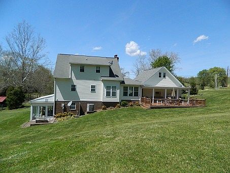 Pristine country home, complete with covered and open timber-tech decking, gazebo, spring-fed creek, barn with water, electricity and wood stove. The one and half acre property affords space for gardening and small animal husbandry. Basement level offers living and dining areas, a Franklin gas stove helps keep the area toasty warm, the unfinished side of basement houses washer and dryer, freezer, refrigerator, extra storage and systems for water and central vacuum. Washer and Dryer hook-ups are available on the first floor also. A generous 230 square foot sunroom is adjacent to the basement living area. Above the two-car garage is the third bedroom and full bath. The upstairs of the main level has one bedroom, full bath and loft area. Hardwood flooring in main living room, dining and bedrooms, ceramic tile in baths and kitchen also corian counter tops in kitchen, Perfect property for family looking for spacious care-free living.
