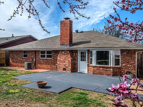 Beautifully maintained home in Rolling Heights addition!! You will love the flow of this floor plan offering great natural light throughout and two living spaces with updated paint, wood laminate, and tile floors. The family room boasts a cozy fireplace with brick surround and is situated just off open concept kitchen and dining. This kitchen offers tons of counter space, eating bar, pantry, and built in cook top and oven! The primary bedroom provides two closets and updated en suite with full shower! The oversized back patio is a great space for entertaining or enjoying serene mornings or evenings with a cup of coffee. Like to garden? So many options for this large fenced back yard with existing fruit trees! Located within minutes of Tinker Air Force Base, restaurant, and shopping!!