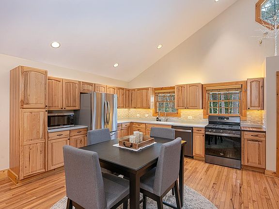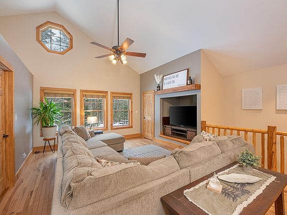 Privacy & convenience, all in one! This two story home is located within minutes to all of the amenities of Eagle River while being nestled on 8 high & dry acres of Northwoods serenity. The home boasts four bedrooms & two full bathrooms with living space spread out between the two floors. There are 2 bedrooms & one bath both upstairs & down, and the first floor also offers a kitchenette & a second family room. Add to all of this the fact that it is in MOVE IN READY condition, offers hydronic heat, natural gas, an insulated cold storage room attached to the house perfect for any purpose, a gorgeous picturesque long winding driveway, & a detached 2 car garage. Plenty of wildlife & Northwoods scenery can be viewed from every room perched high on the main floor! Recent updates include a brand new septic drainfield, kitchen appliances, and a water filtration system.