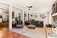 Original muralGas rangeOriginal custom tiled bathExterior seating areasUltimate outdoor living spaceVaulted wood beam ceilingsWood burning fireplace