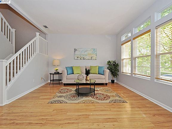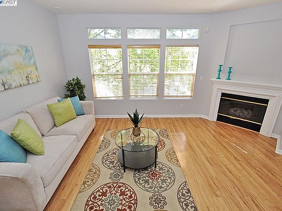 Beautiful & ready to move in, new reconfigured kitchen with white cabinets, quartz counters w/additional space, new sink, new faucet, all new stainless steel appliances (gas range, vent hood, dishwasher & refrigerator) & new flooring, new interior paint light&bright, living/dining area with laminate flooring and fireplace, popular floor plan w/family room, new flooring in bathrooms, spacious garage, central A/C,laundry rm with washer/dryer, walk to shops, great location in complex, walk to BART, downtown, Fremont Hub, Central Park, Lake Elizabeth, Library, Hospital and Schools, low HOA dues $200, gated community, Open Saturday/Sunday 1-4pm