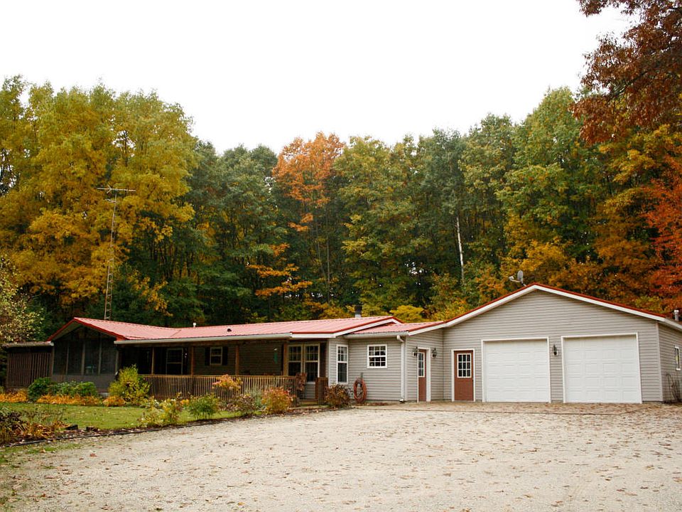 This one of a kind country setting home sits on over 60 acres with over 1250 feet of frontage on the Muskegon River. Perfect for all of your outdoor needs, yet close enough to town. Special features include: elevated hunting blinds, tiki bar on the river and your very own boat launch. Out buildings include a 40 x 60 stick built barn with a half bath and a 24 x 24 carport and a 12 x 30 shed for all of your storage needs. Also, don't forget an attached 28 x 36 heated garage. The home is very open and charmingly decorated with an open kitchen and plenty of cabinetry and an island. Stone fireplace for those chilly nights. Special characteristics include: three season room off the front, steel roof, central air and outdoor wood stove. Don't let this 3 bedroom 2 1/2 bath home get away.