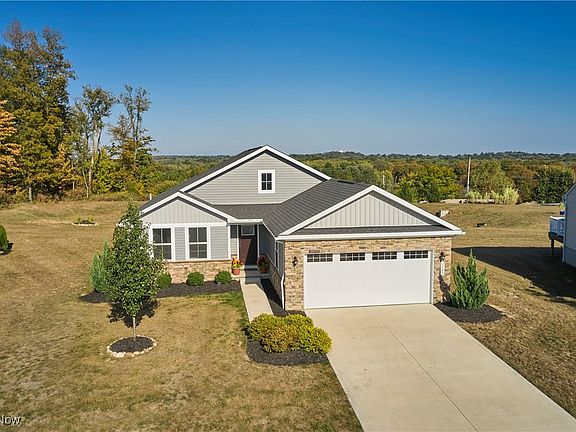Spend this fall in your new 3 BR 2 bath 2021 build & enjoying a covered composite deck overlooking the treeline in Norton. 3649 Stradley Circle in Cider Ridge features an open plan, high ceilings and an attached 2 car garage. Pass by neat landscaping to a front porch and welcoming front foyer. Off of the foyer you'll find 2 well-sized bedrooms with ample closet space and a full bath with a single vanity, LVT flooring and tub/shower. BR 1 has sound proof windows - great for a light sleeper, work meetings, even podcasting! French doors enclose a dedicated office/library. The kitchen features white quartz counters, black wood cabinets, a suite of stainless steel appliances, a pantry, LVT flooring and dining area. Off of the dining area is a slider that leads to an awesome covered back composite deck with recessed lighting that overlooks a retention pond and has nice east-facing longviews. The 14x15 primary bedroom features private views out of the back of the home and a lovely ensuite full bath with tile flooring, a double vanity, tile shower with glass door and a large walk-in closet. Laundry room on the man level includes the new washer & dryer! The lower level is unfinished and provides tons of storage and is rough plumbed for a bathroom. Also enjoy the quiet cul-de-sac location and a nice neighborhood pavilion. HOA includes landscaping and plowing. Come check out this move-in ready home that provides stylish & convenient first floor living.