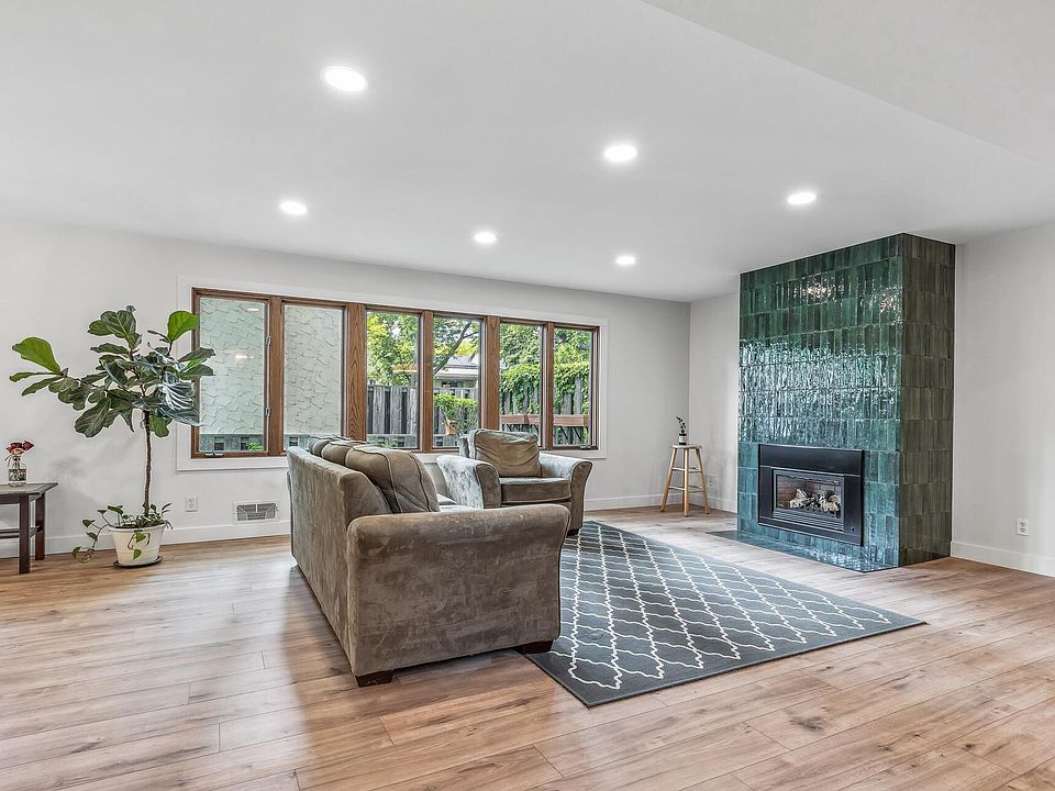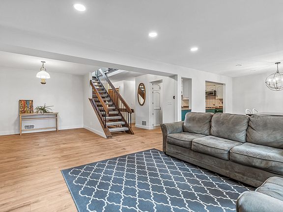 The townhome's layout includes a versatile main-level living space that can accommodate a home office or additional seating area. Each bathroom has been thoughtfully updated with modern fixtures and finishes.