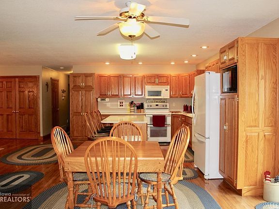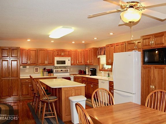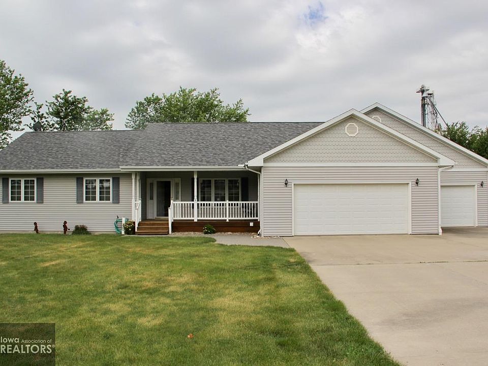 Escape city taxes here. Located just north of Newton on paved road offers easy access to I-80. This spacious ranch with a rocking chair front porch is very well maintained. Inside you will love the shiny hardwood floors, large kitchen with 2 cabinet pantries, base cabinets with pull out shelving. Plenty of dining areas: an eat in kitchen plus separate more formal dining area. The finished walkout lower level could be a mother in law quarters with another kitchen area, family room, bedroom and bath. Plus a large storage area. The 3 car garage is all insulated. 3rd stall is heated area. Plus a handy 16 X 24' shed. Don't miss your chance to enjoy this lovely home.