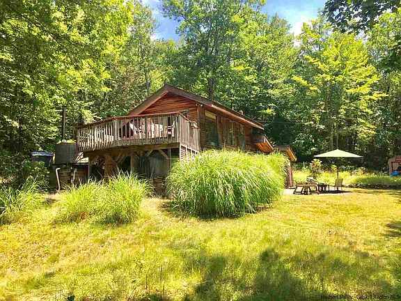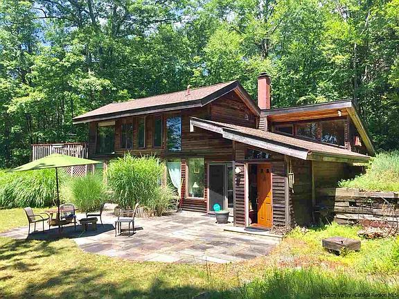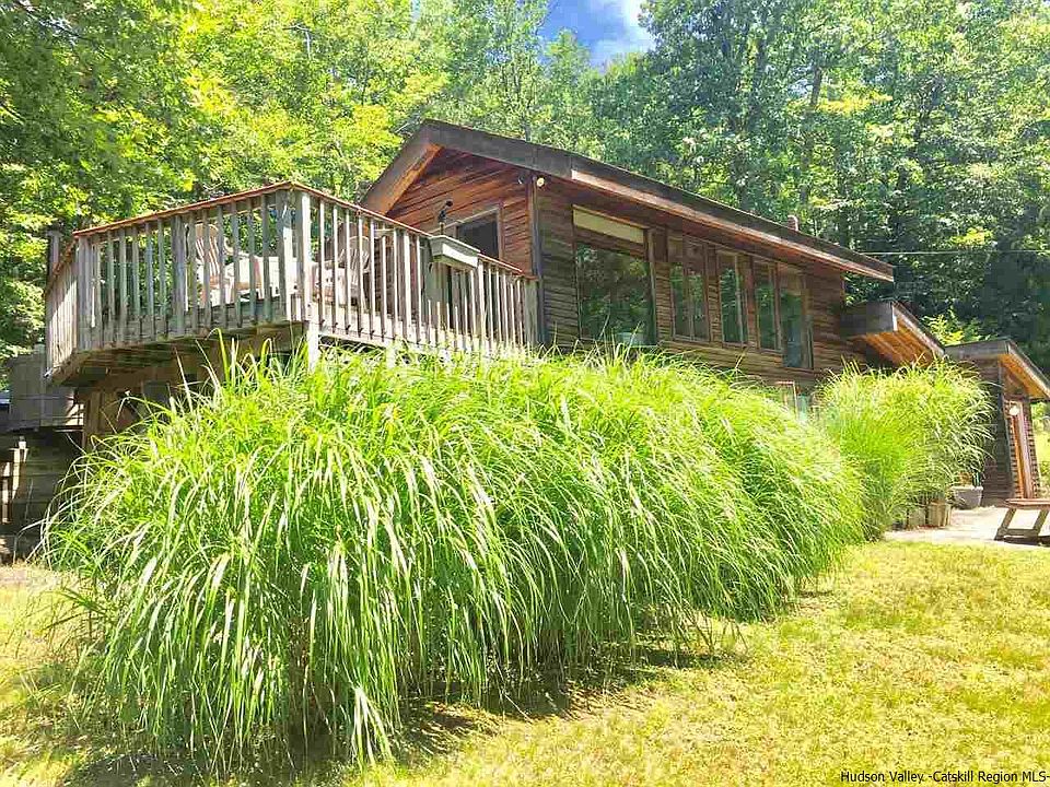 Escape the ultra-modern to the quintessential country home set on 5 plus private bucolic acres with gorgeous mountain views! The 2 bedroom, 2 bath house is part of a 1970s smartly designed 5-acre subdivision that insures seclusion and privacy for all homeowners. Abbey Road is a well-maintained town road that dead ends to accommodate only residents' traffic. This cedar sided contemporary is earth bermed on the north side with passive solar south facing. This construction saves energy and brings in the glorious southern light. Numerous amenities include: Beamed, cathedral and skylit ceilings. An open floor plan connecting the living room, dining area and kitchen. The country kitchen with steel appliances, has a stone floor, pine cabinets and granite tops. The living room leads out to a lovely stone patio which captures the enchanting views. Besides the 2nd bedroom is a cozy den/tv room which can accommodate an overnight guest if needed. Upstairs has a convenient office space and the master bedroom suite with a nice private bath. The bedroom has a wall of closets, storage space and great wide board pine flooring. The mtn. views from this room and the spacious deck are spectacular! For extra enjoyment there is a wood fired hot tub on the deck for year-round use. This move-in property is just 10 minutes to the village of Woodstock, close to Wilson State Park, minutes to Phoenicia for fishing, hiking, shopping, Sweet Sue's famous restaurant, skiing and the Emerson Resort. Great location! It is difficult to list all that this property has to offer. Must be seen to fully appreciate! BONUS!! The back line of the property borders over 300 acres of NY State lands for your total use. First time on the market in 39 years.