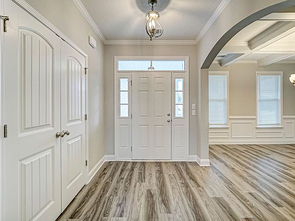 #CarbonConstruction Hannah Plan! Come home after a long day at work and rock on the rocking chair front porch that overlooks the landscaped yard with beautiful landscaping. As you walk into the large foyer you will be greeted by luxury plank wood look vinyl flooring, crown molding and high ceilings. The kitchen features granite counter tops, stainless steel appliances package, large island that overlooks the breakfast area great room. Enjoy those family gatherings in the dining room that has coffered ceilings and wainscoting. The large master suite has tray ceilings and recess lighting. The master bath has dual vanity sinks with framed mirrors, a walk in custom tiled shower with built in niche, and two large walk-in closets. Of course, you must check out the rear covered patio that is perfect for relaxing and grilling out. These are stock photos.