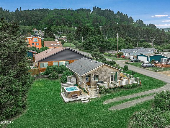 This charming two-bedroom, one-bath cottage underwent a complete renovation in 2013. Features include a vaulted tongue & groove ceiling, bamboo flooring, a tiled shower and a tankless, propane water heater. Enjoy an ocean view from the spacious deck as you have your morning coffee, or unwind in the hot tub while watching the beautiful Oregon Coast sunsets. There's even an outdoor shower, perfect for pets and easy sand removal. Located within Yachats city limits, this home offers convenient access to all the restaurants, art galleries and shops, and is only a short distance to the ocean and popular 804 Trail.