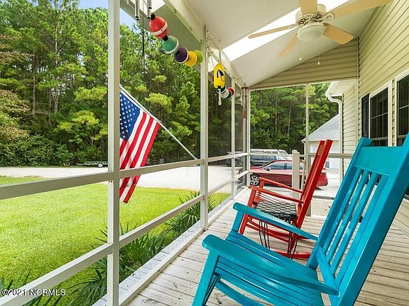 Beautiful 3 BR 2.5 bath home in a private setting with 4.4 acres. Featuring a spacious 30' x 40' workshop/ detached garage with abundance of overhead storage. Peaceful quiet setting with a beautifully landscaped yard in the lovely Waters Edge neighborhood. This home offers a first-floor master suite with walk-in closet, Carolina room, inviting covered front porch, gas range, gas log fireplace, screened porch, office and hobby rooms, and satellite high speed internet. This hidden treasure with dock and boat slip at the community marina provides convenient access to the Pamlico Sound for boating, fishing and sailing.