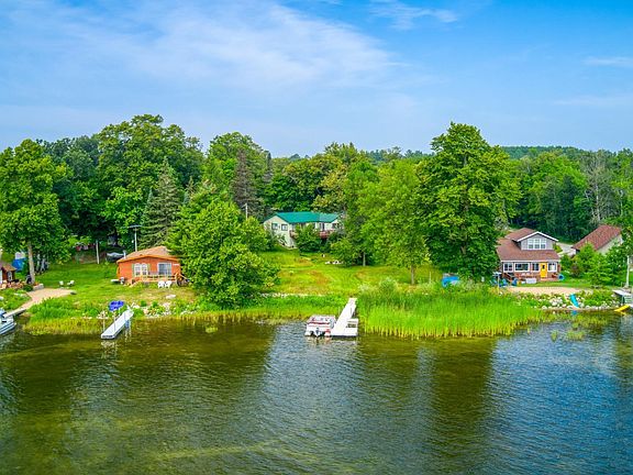 One of a kind Turtle Lake property, wake up to the sounds of loons and take in this beautiful view!! Almost 2.5 acres on the West side of the lake, with level sand! A 2 bed, 2 bath home with open layout on the main, natural woodwork, beautiful cabinetry, and the large deck offers endless hosting or the perfect view for morning coffee. Standing seam steel roof. Two cabins and 3 detached garages with more than enough room for all your toys. Enjoy all the fruit trees and perennials scattered across the lot. Just North of Bemidji, this chain of lakes property is prime! Set up your private tour today.